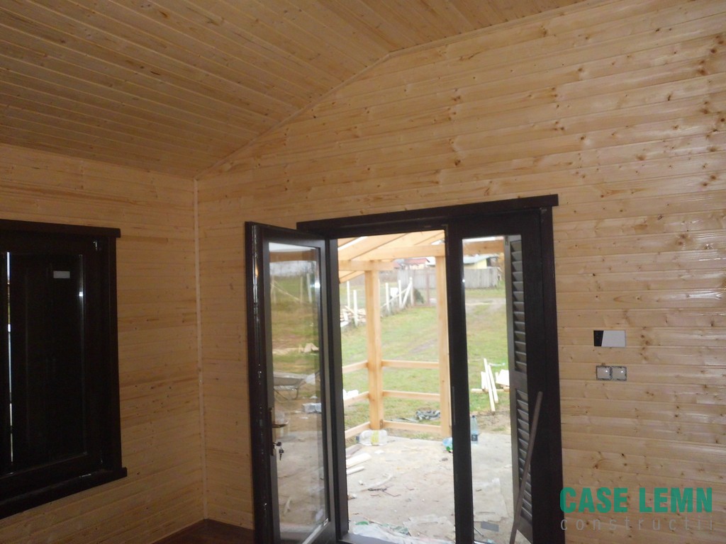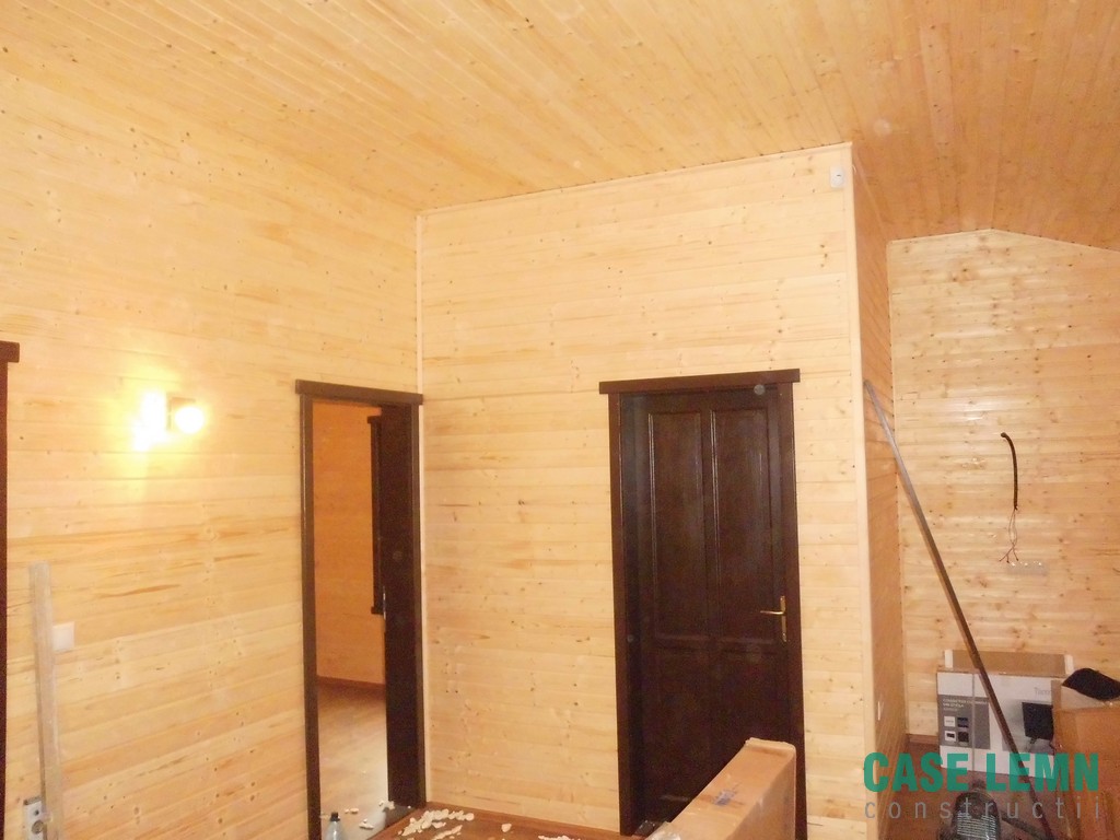 - interiorul finisat cu lambriu de lemn si grinzi aparente